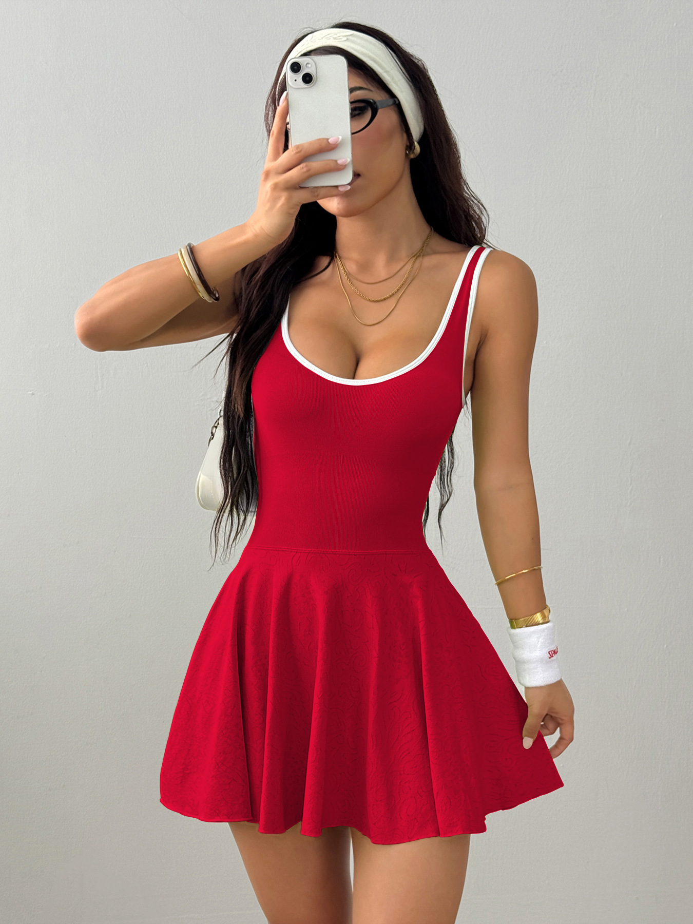 Breathable Quick-drying Pleated Slip Dress With Built-in Bra Pads